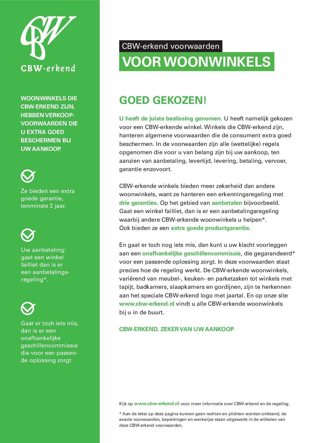 Samengevat treft u bij de erkende woonwinkel: kwaliteit, garanties, degelijke productinformatie, hoge service en correcte afhandeling van eventuele klachten.