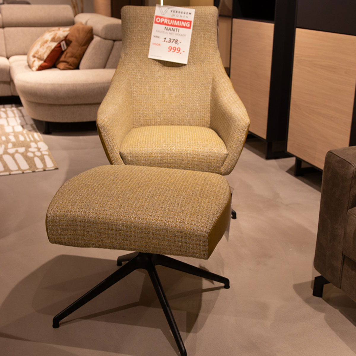 Alles voor je interieur: van banken en stoelen tot vloerkleden, bedden, verlichting en accessoires. Allemaal showroommodellen of opruimingsartikelen met korting.