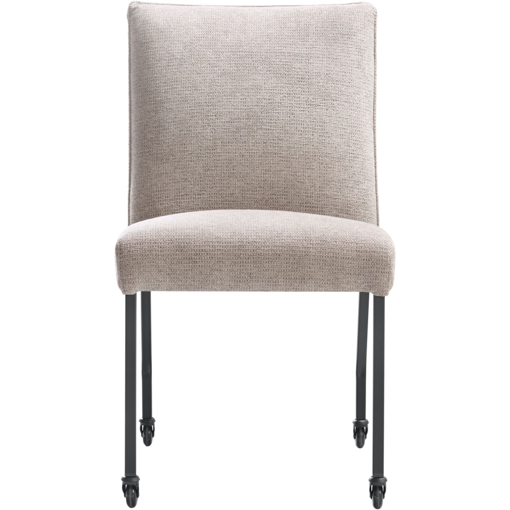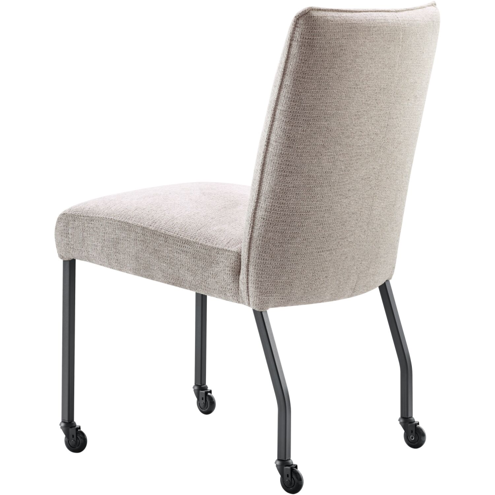 Eetkamerstoel Mianta is een moderne stoel met een tijdloze uitstraling. De zachte beige stof en zwart metalen poten met skatewielen geven aan Mianta ook een industriële touch. Deze eetstoel biedt een uitstekend zitcomfort en leent zich perfect voor in iedere woonstijl.