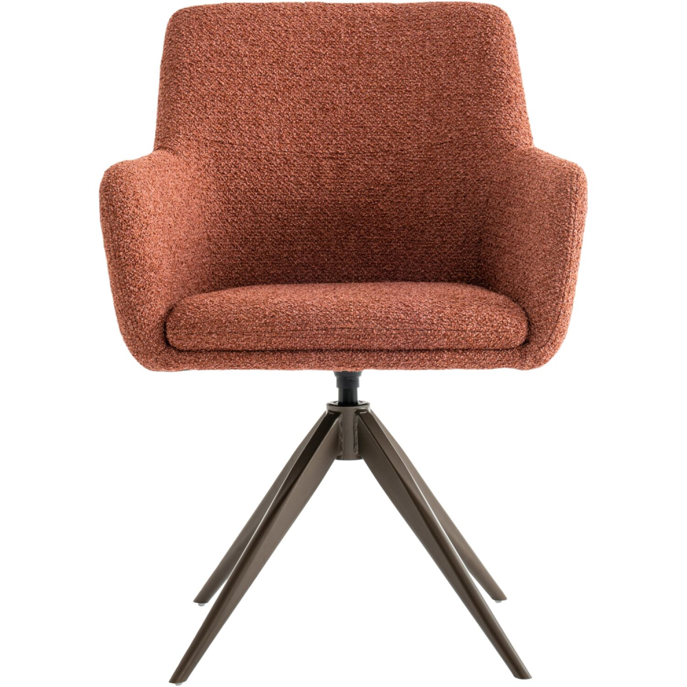 Wat de Vinta een bijzondere armstoel maakt, is de combinatie van unieke eigenschappen. Allereerst heeft de stoel een rank metalen onderstel met een automatisch terugdraaimechanisme, waardoor deze altijd netjes aan tafel staat en je makkelijk “uitstapt”. Een ander leuk detail is dat de stoel verkrijgbaar is in 3 kleurtjes in de prachtige boucléstof rhythm.