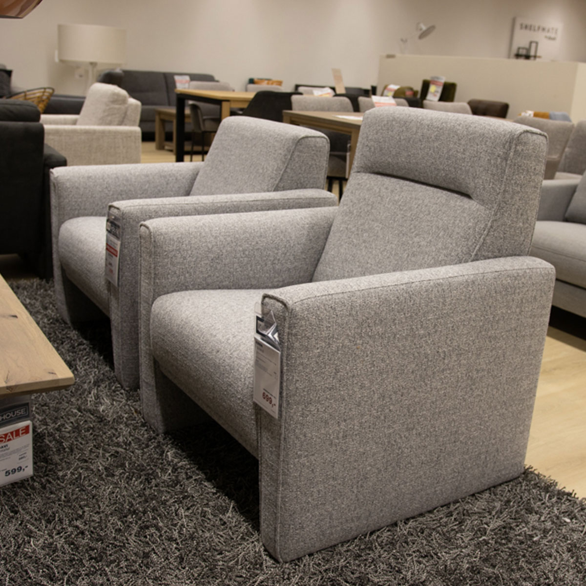 Uitgevoerd in stof Oasis, kleur 40-ashgrey met hoge rug. (hxbxd) 99x83x84cm