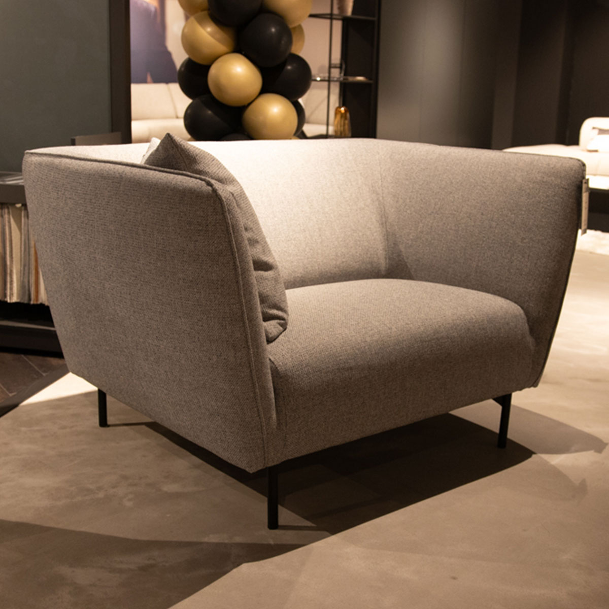 Loveseat in stof marzena met HR-schuim en zwarte metalen poten. (hxbxd) 87x134x92cm.