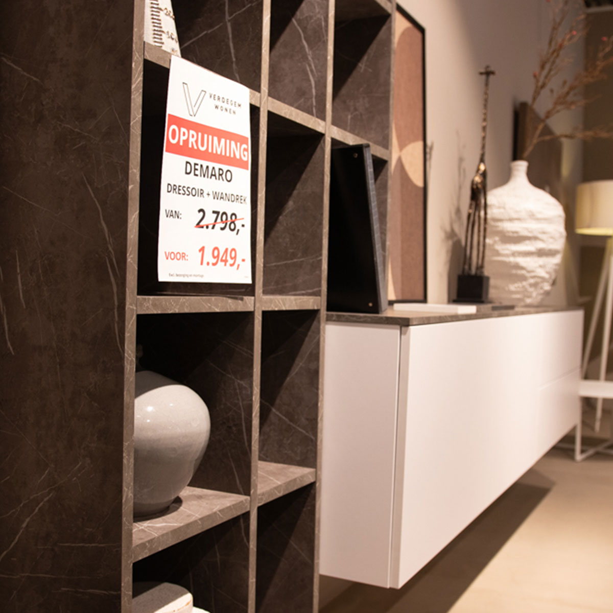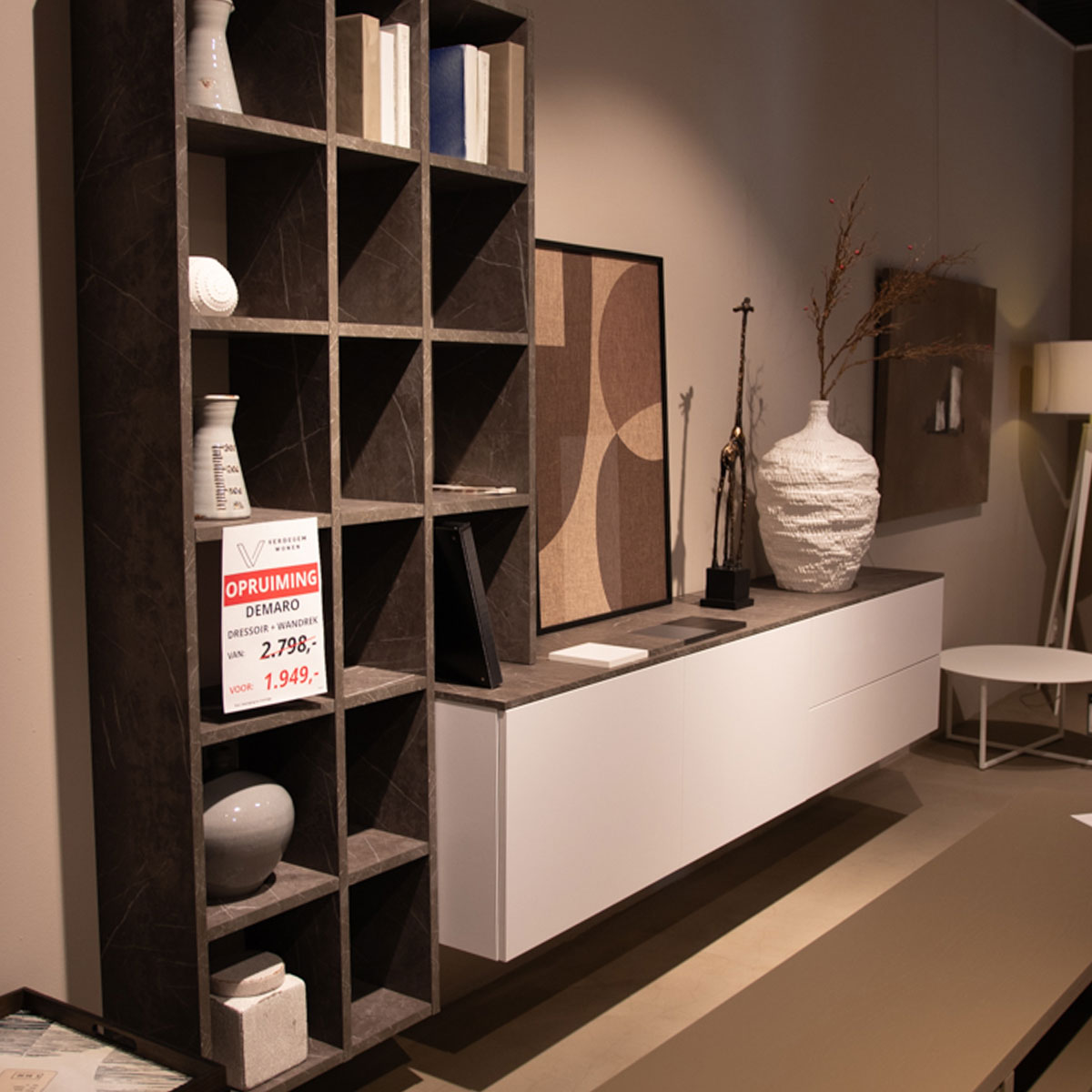 Demano wandrek uitgevoerd in patagonia grigio met 15 open vakken.
